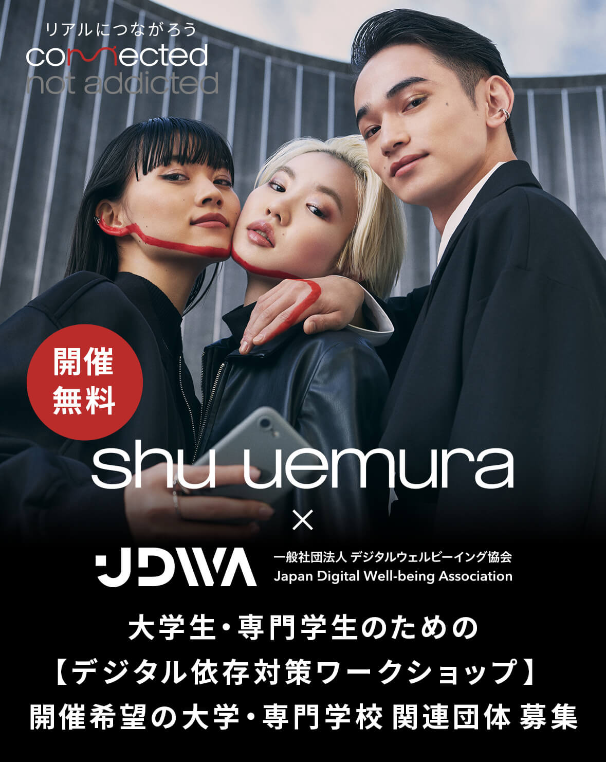 JDWAは、世界的メイクアップ アーティストブランドである「シュウ ウエムラ」とパートナーシップを結び、大学生・専門学生を対象としたワークショップ形式プログラムを全国で実施しています。